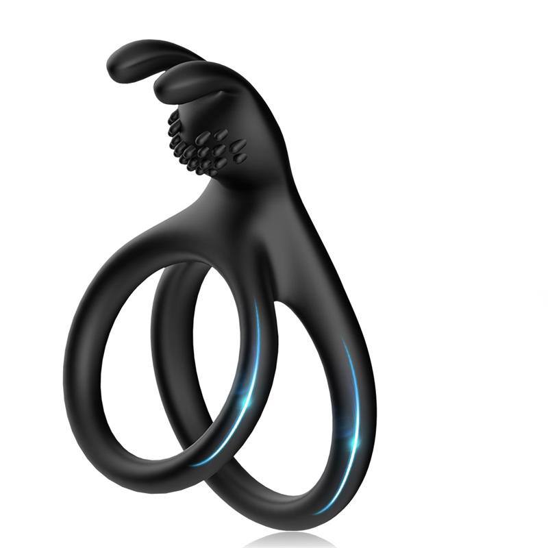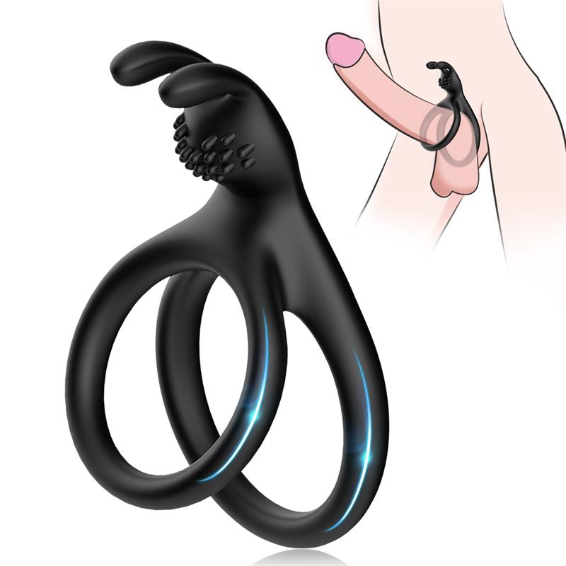 Anillo doble para el pene extra flexible que incluye una parte extra para la estimulación del clítoris en forma de conejito.
