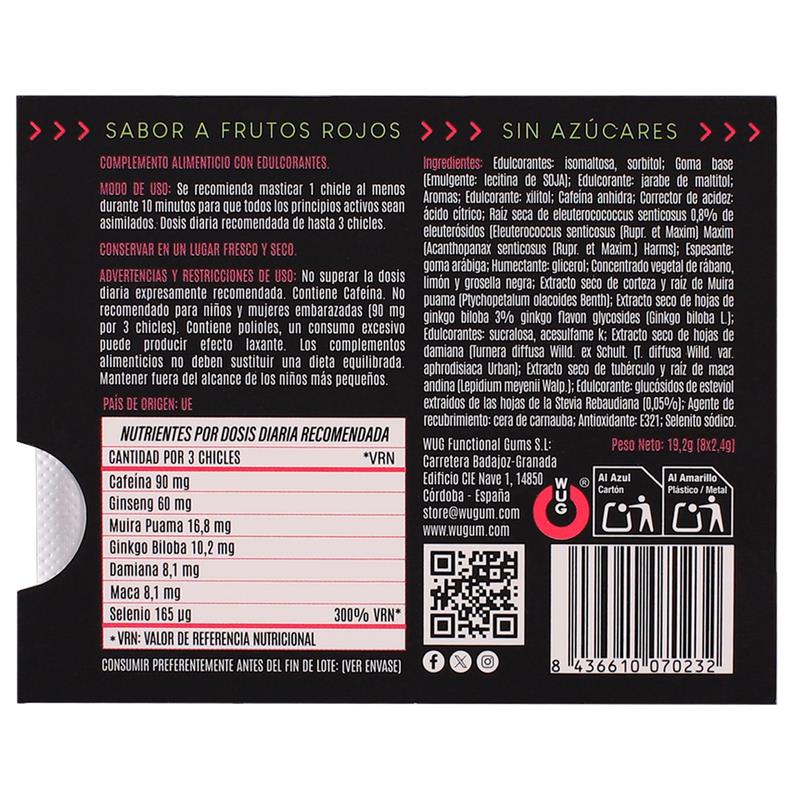 No recomendado para niños ni mujeres embarazadas. No superar la dosis diaria expresamente recomendada. Contiene cafeína. Contiene polioles, un consumo excesivo puede producir efectos laxantes. Los complementos alimenticios no deben sustituir una dieta equilibrada. Mantener fuera del alcance de los niños más pequeños.