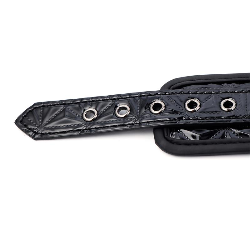 Esposas para tobillos acolchadas, para cuando tu sumiso/a debe quedarse en su sitio y hacer lo que se le manda. Sus materiales en cuero vegano son muy resistentes, cómodos y de alta calidad, totalmente libre de níquel, ideal para disfrutar sin descuidar la comodidad y la seguridad.