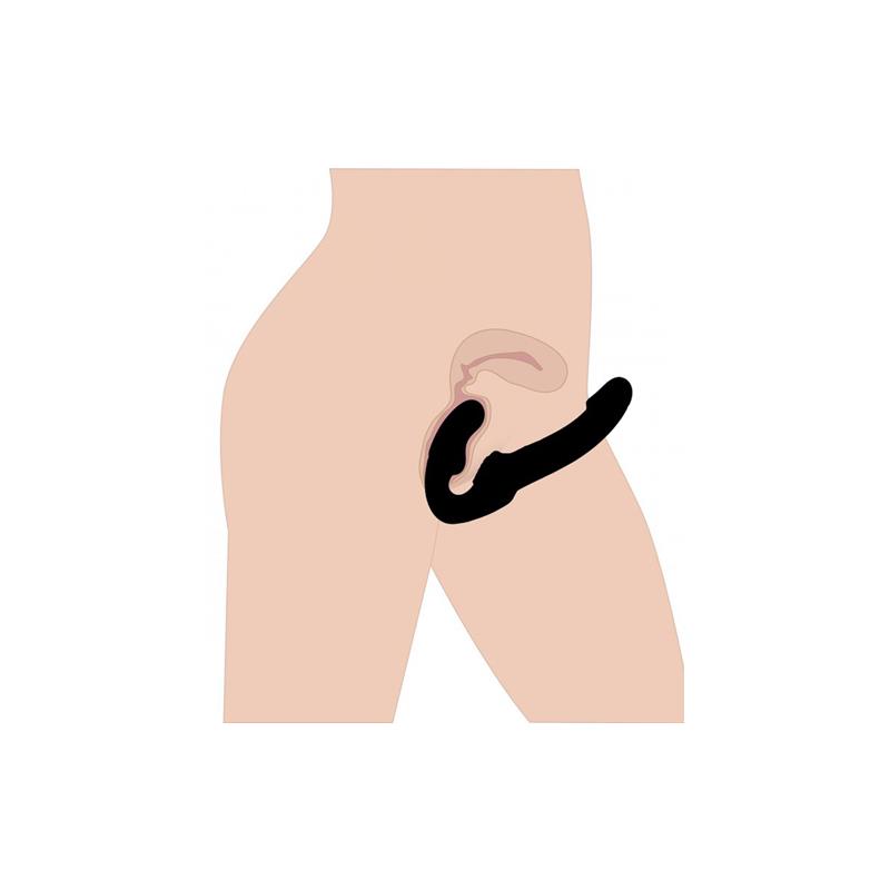 Con este vibrador doble no es necesario el uso de arnés. El vibrador cuenta con un curva ergonómica y está diseñado para deslizarse dentro y mantenerse en su lugar mientras fortaleces el suelo pélvico. Cuenta con dos motores independientes para controlar sus 3 velocidades y 5 funciones de vibración. El diseño a prueba de agua está completamente cerrado, con un material firme y una forma semi-realista. Hay una almohadilla texturizada que está diseñada para estimular el clítoris y una punta especialmente angulada para proporcionar una sensación directa en el punto G.