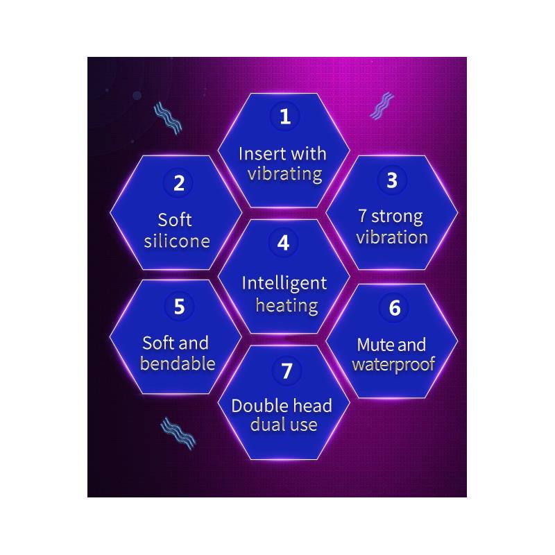 Su función de calor hará que se caliente hasta los agradables 42ºC mientras que su potente motor te llevará a lugares impresionantes llenos de placer. Cuenta con silicona de grado médico para un placer y comodidad increíble. Su motor es potente, pero también es silencioso, para que te lo puedas llevar a donde quieras, incluso al baño, gracias a su impermeabilidad. Recuerda limpiar tu vibrador antes y después de usarlo con agua caliente para una correcta desinfección. Podrás cargar tu juguete con USB magnético y con un conector básico de móvil, para que sea lo más cómodo posible.