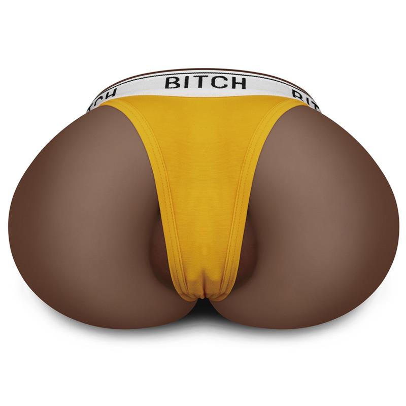 Masturbador con un diseño ideal. Este masturbador en forma de culo cuenta con un tanga amarillo con la palabra Bitch. Está bellamente diseñado y moldeado a partir de una modelo para una experiencia más auténtica. La inserción del ano es mucho más apretada y cuenta con numerosas curvas. Podrás acostarla o sostenerla cerca de ti mientras exploras cualquiera de sus dos intrincadas inserciones.