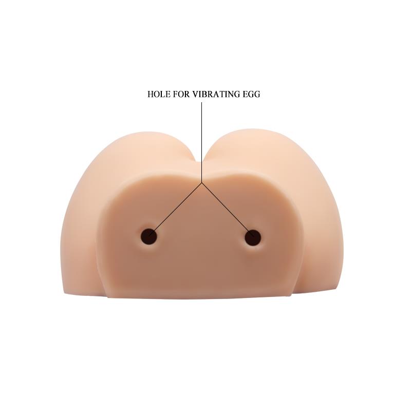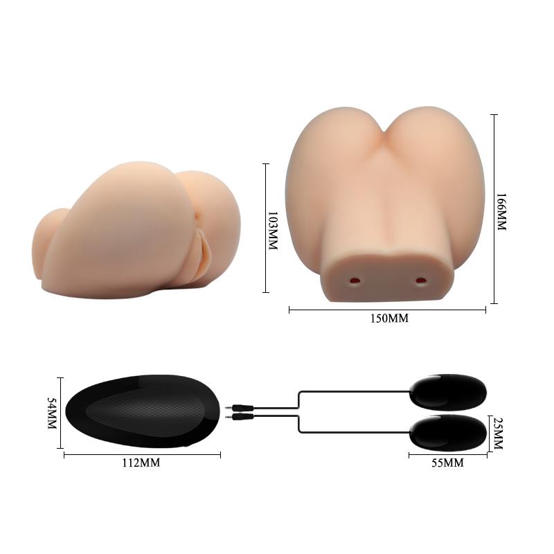 Añade realismo y placer a tus noches de soledad con este masturbador. Su forma imita una vagina y un ano, para que puedas elegir. Cuenta con dos huevos vibradores a control remoto para que puedas ponerlo en la base y añadir más sensaciones a la noche.