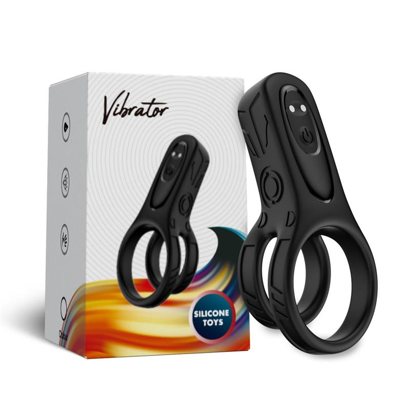 Un anillo vibrador para el pene diseñado para duplicar el placer. Puedes poner ambos anillos en el cuerpo del pene, o pon uno en el cuerpo y otro en la base de los testículos. Cuenta con 9 funciones de vibración.