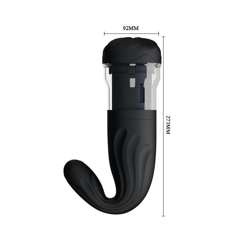 Con este masturbador solo tendrás que meter tu miembro y dejar que él haga el resto. En el túnel interior te cosquillearán ciento de estrías mientras que el masturbador se mueve arriba y abajo con sus 4 funciones de rotación.