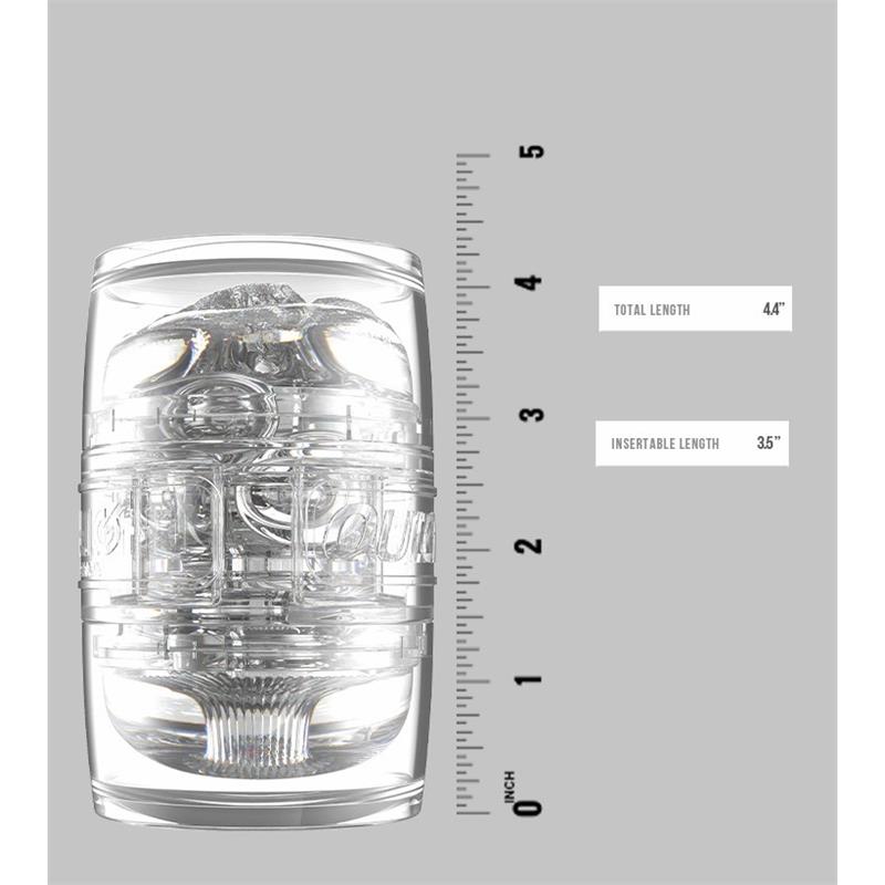 A veces la eficiencia es la mejor política. El QUICKSHOT tiene menos de la mitad del tamaño del Fleshlight original y es único debido a sus orificios completamente expuestos en cada extremo. Esto significa que se puede utilizar como estimulación adicional durante el sexo oral o como ayuda para la masturbación en solitario.