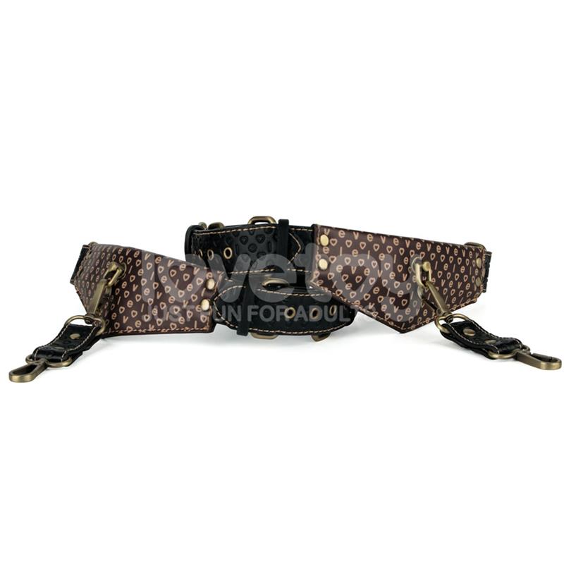Satisface tus deseos más íntimos y explora los placeres del BDSM con nuestro set de esposas para muslos Rebellion Reign. Este artículo está elaborado con material de PU de primera calidad con una meticulosa atención al detalle, lo que garantiza comodidad y protección para la piel. Las hebillas metálicas integradas permiten un ajuste flexible de tamaño, adaptándose a una amplia gama de tallas.