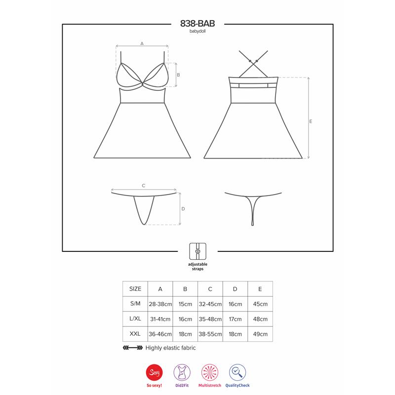 Juguetón babydoll de color negro con una mezcla de patrones y patrones. La parte de la falda es en negro opaco, la parte del pecho y la cintura cuentas con un patrón de flores y una serie de tiras que cruzan tu pecho y espalda.
