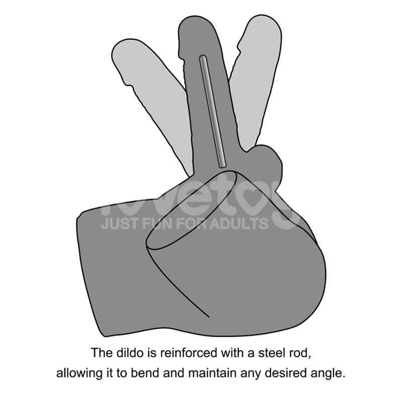 - Dildo articulable reforzado con una varilla de acero para un posicionamiento personalizado.