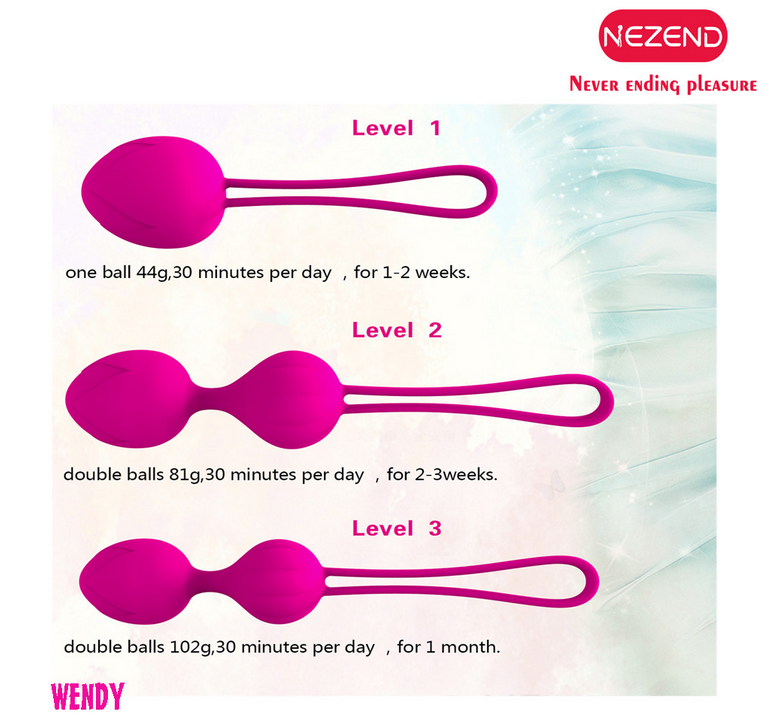 Forma de uso: No se deben sobrepasar los 15-20 minutos de uso continuado para evitar la fatiga muscular. Se recomienda usar todos los días y de forma regular y constante, si no, no se notarán las grandes mejorías en el suelo pélvico. Es importante empezar con la bola unitaria y mantenerse de pie o haciendo algún tipo de ejercicio durante esos 15 minutos. Si al principio la bola «se cae» debido a la poca musculatura vaginal interna, entonces iniciar los ejercicios tumbada y realizar la contracción de la vagina de forma activa hasta que se haya obtenido la musculatura necesaria para poder seguir los ejercicios de pie o en movimiento. Una vez que se consiga la total comodidad con una bolas se pasará al juego de dos bolas de menor peso. Se repite la rutina del ejercicio hasta que se consiga una total comodidad para pasar al juego de bolas más pesado. El tiempo de tratamiento es muy personal, depdende del estado de la musculatura vaginal de cada mujer, el tiempo que dedica cada día al tratamiento, etc.